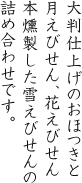 大判仕上げのおほつきと月えびせん、花えびせん本燻製した雪えびせんの詰め合わせです。